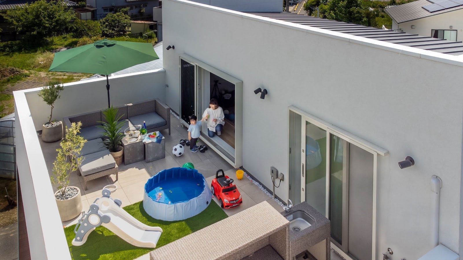 パパがゴルフのパット練習に使ったり、ママがヨガを楽しんだり、子どもたちがシャボン玉をしてみたり。ルーフバルコニーの空間があることで生活に彩りが増えます。
