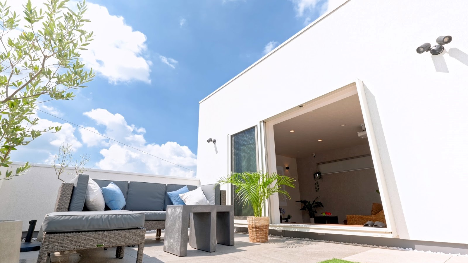 バルコニーとの大きな違いは、屋根や庇の有無です。屋根がある為、雨風をしのぐことができるという特徴があります。
