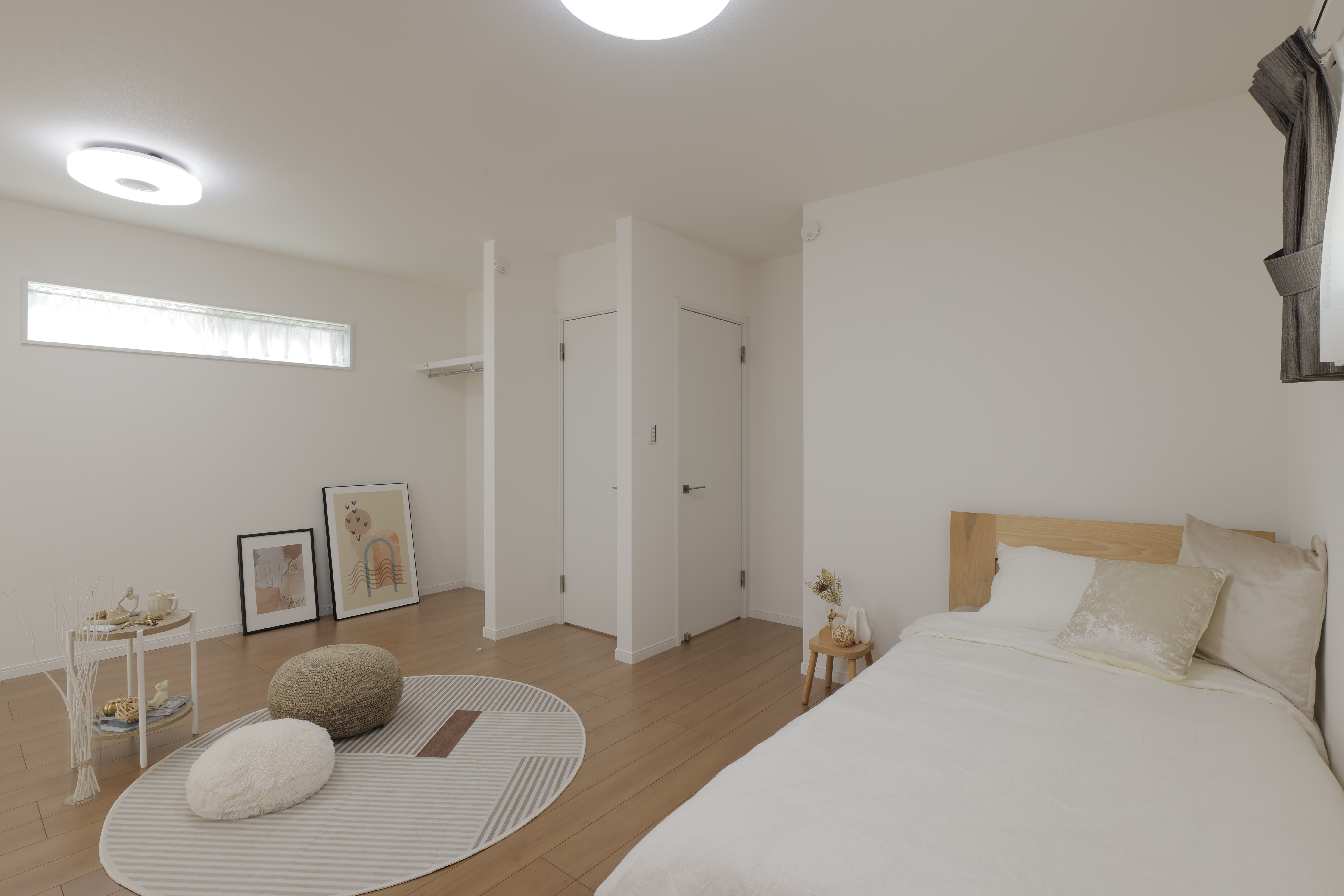 狭小住宅での建築をするという事は土地の間口が小さくなるため、採光計算上奥の部屋に光を取り入れるのが難しくなります。そんな時には2室共通という後から用途に応じて間仕切れる部屋にすることで居室の数を増やすことができます。