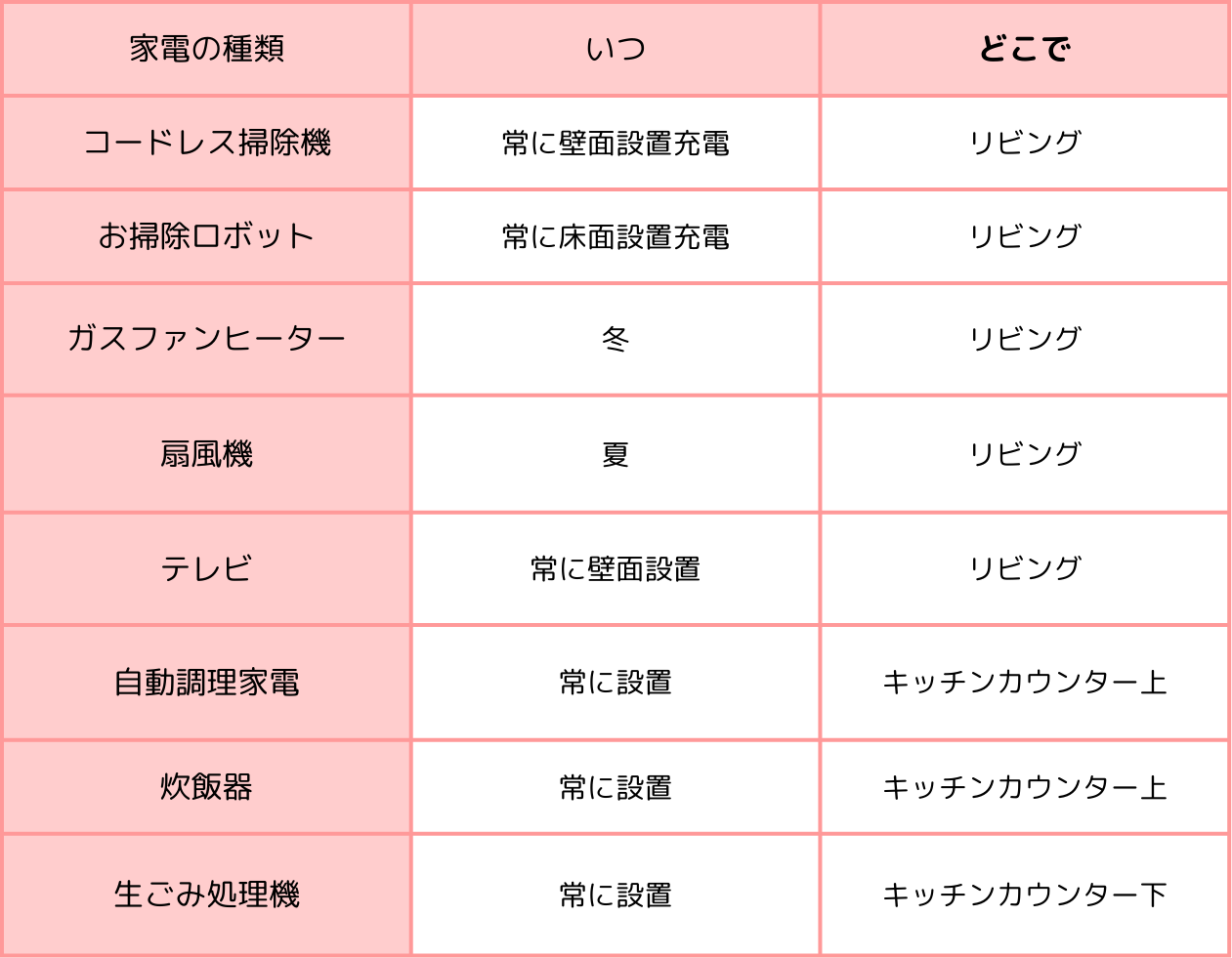 このように生活の変化で使う家電も変わってくるので、今後の家族計画によって使いそうな家電も同じようにリストアップしておけるといいと思います。