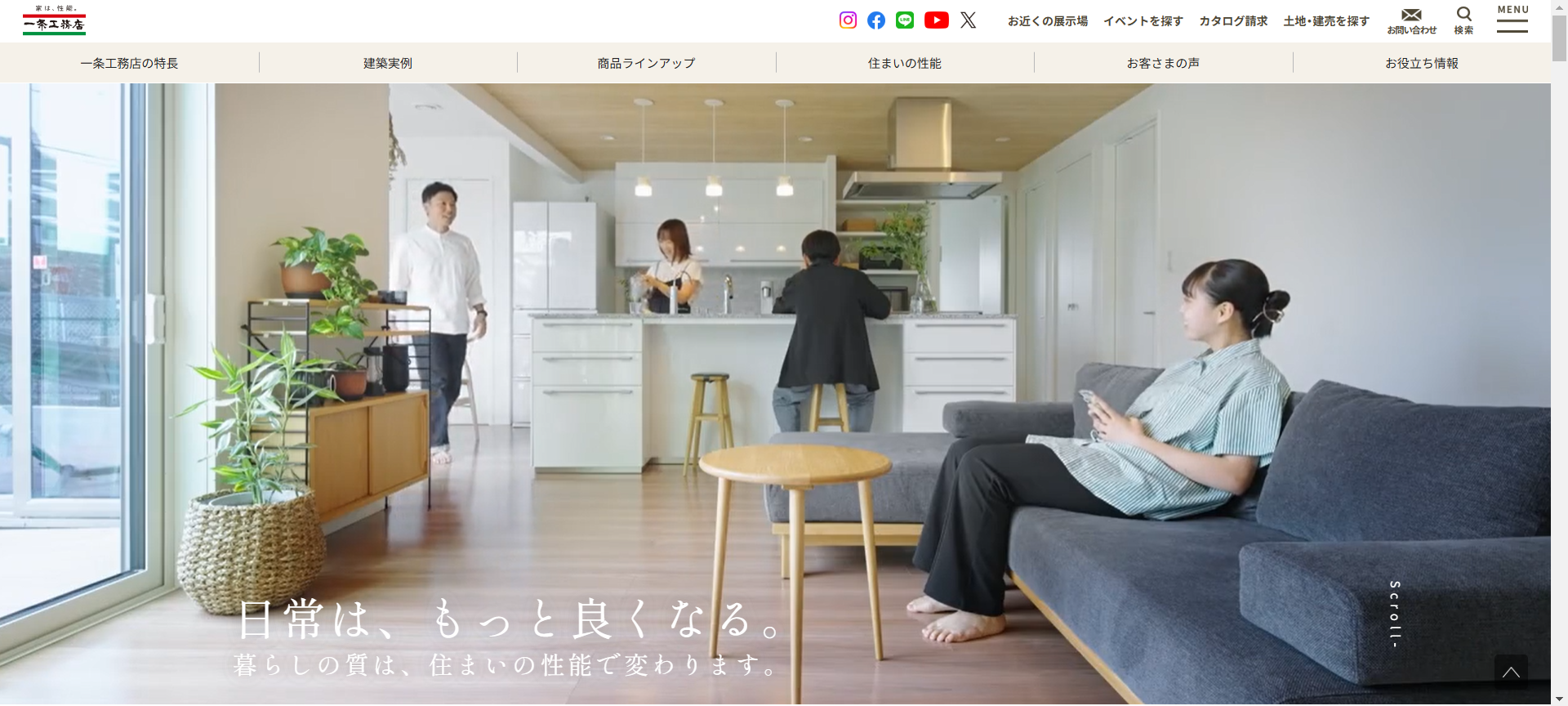 一条工務店は、性能重視の住宅づくりに定評があります。狭小住宅でも断熱性や耐震性に優れた住まいを提供します。