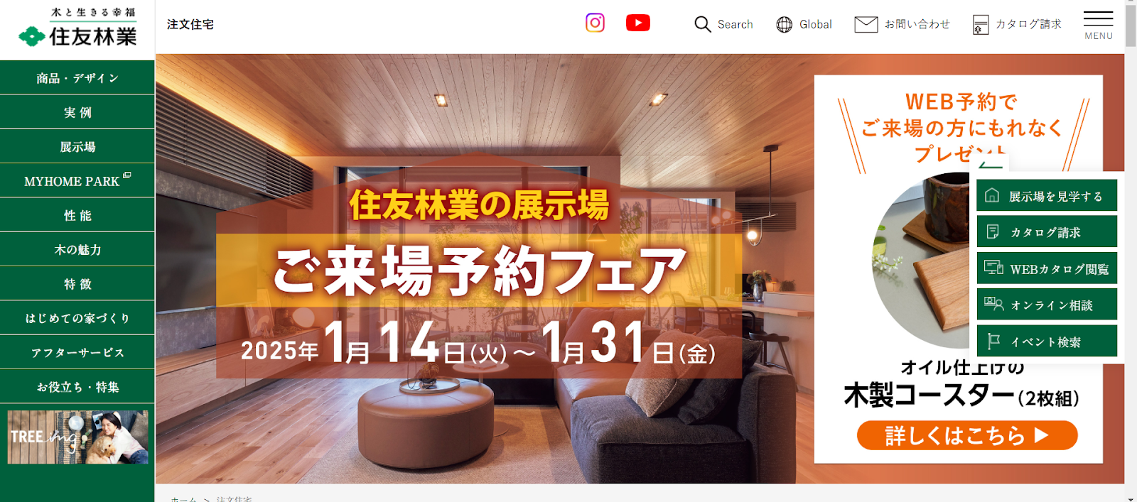 大手ハウスメーカーの住友林業は、木の質感を活かしたデザインが得意です。狭小地でも開放感を感じられる工夫を凝らし、屋上庭園や効率的な収納スペースの設計が魅力です。