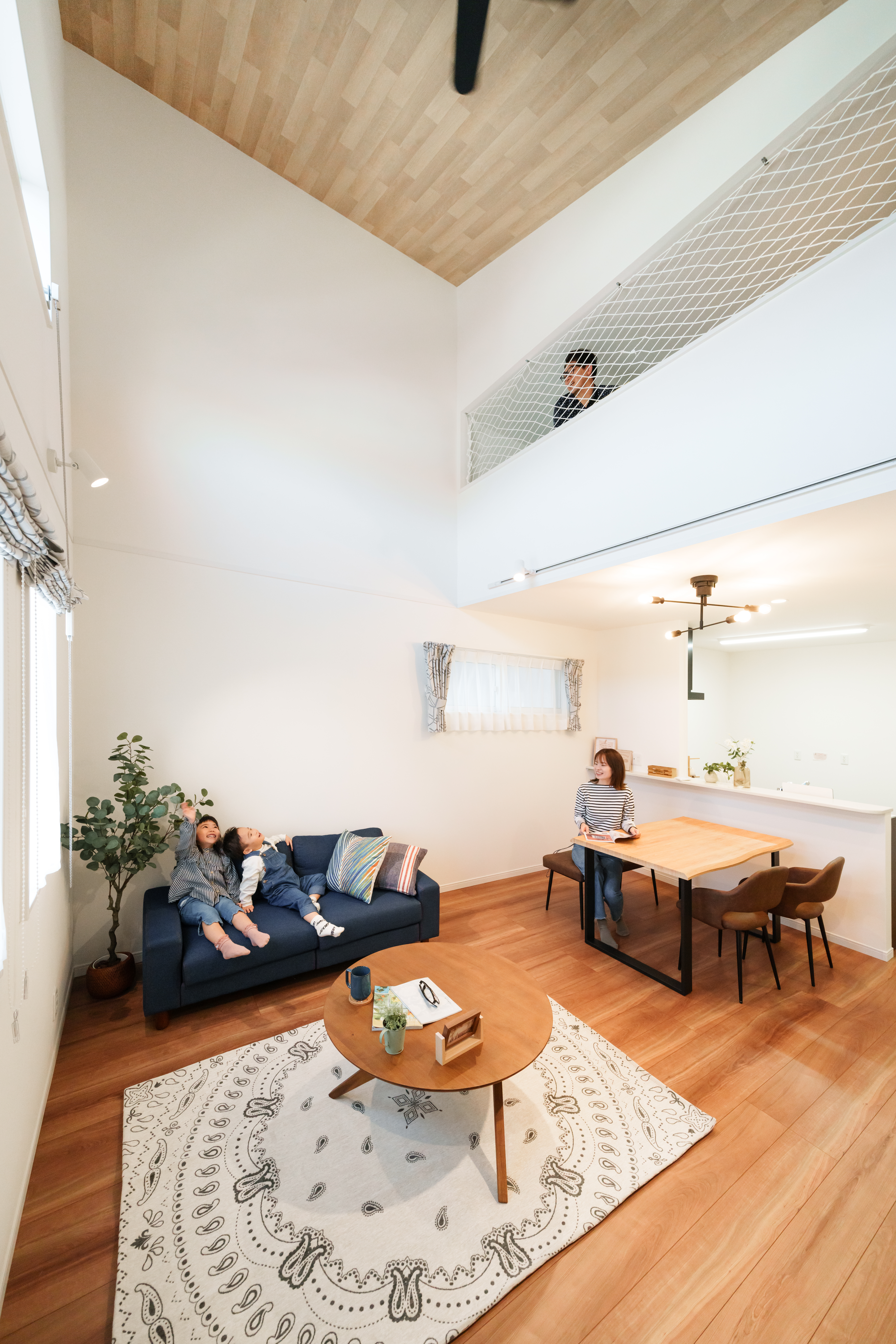 さらに吹き抜け空間の上部にはロフトがあり、小さなお子さんの秘密基地や季節の荷物をしまう場所として収納スペースとしてとても機能的です。