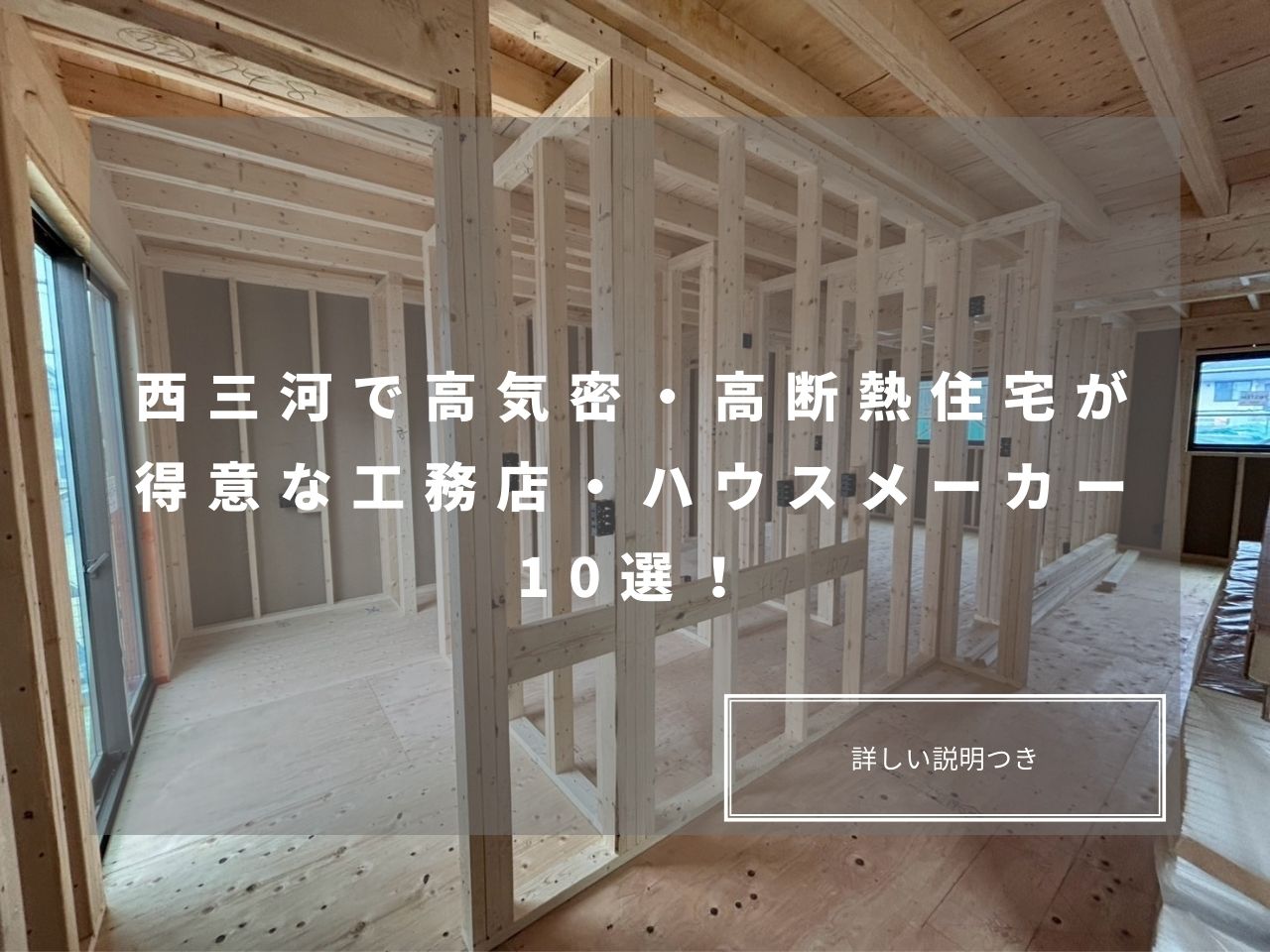 今回は、性能重視で住まいを検討している方に向けて、西三河で“高気密・高断熱住宅”に強みをもつ工務店・ハウスメーカー10選をご紹介します。地元で信頼を集める工務店から、ローコストで性能も追求できるメーカー、さらには大手ハウスメーカーまで幅広くピックアップ。快適で省エネな住まいづくりの参考にしてください。