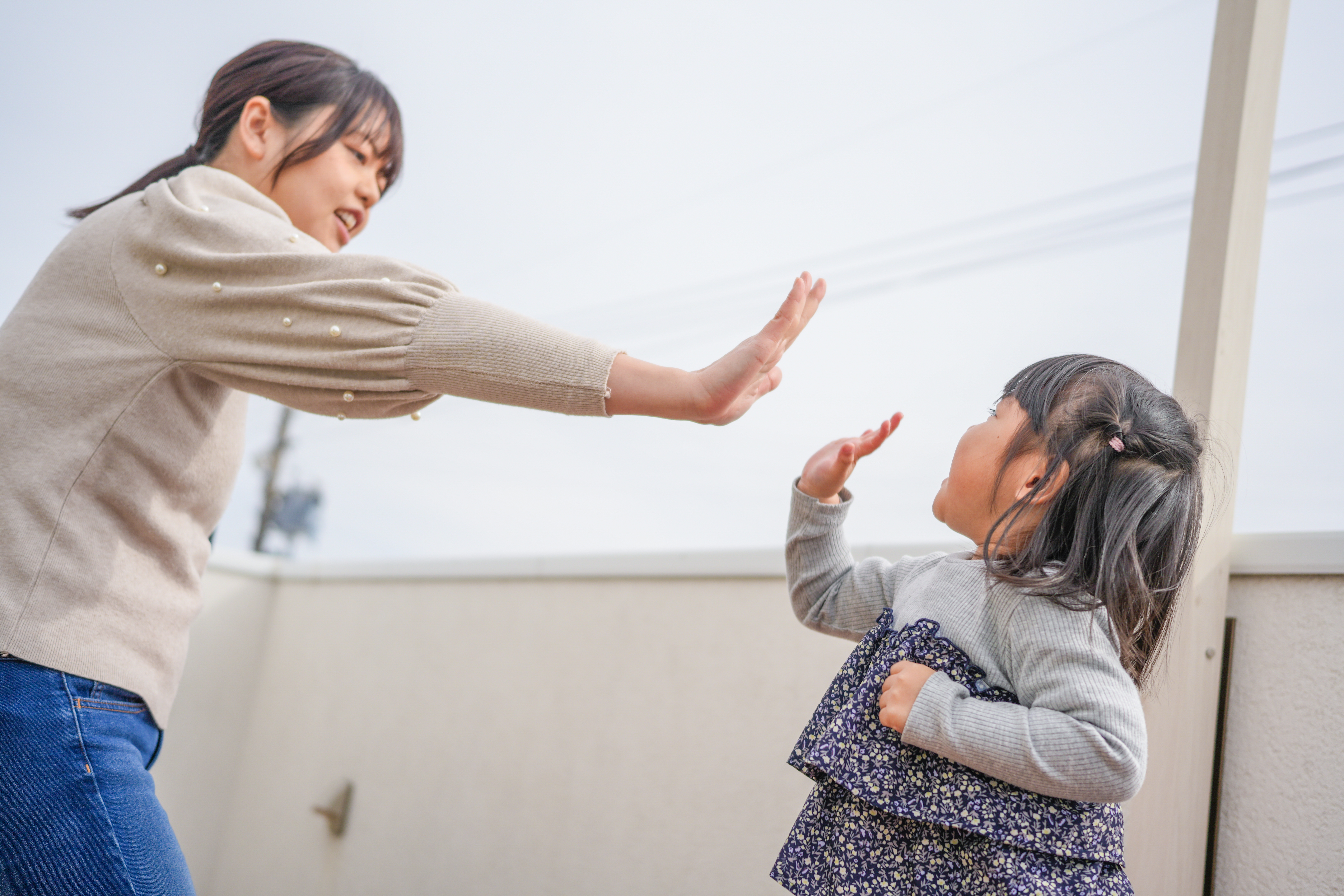 成長するにつれて増える洋服や学用品、外遊び道具は、ファミリークロークや土間収納にまとめるとスッキリ片付きます。さらに屋上にスカイリビングを設ければ、自宅に“安全な遊び場”を確保可能。ボール遊びやプール遊びも安心してでき、親は洗濯や家事をしながら子どもを見守ることができます。