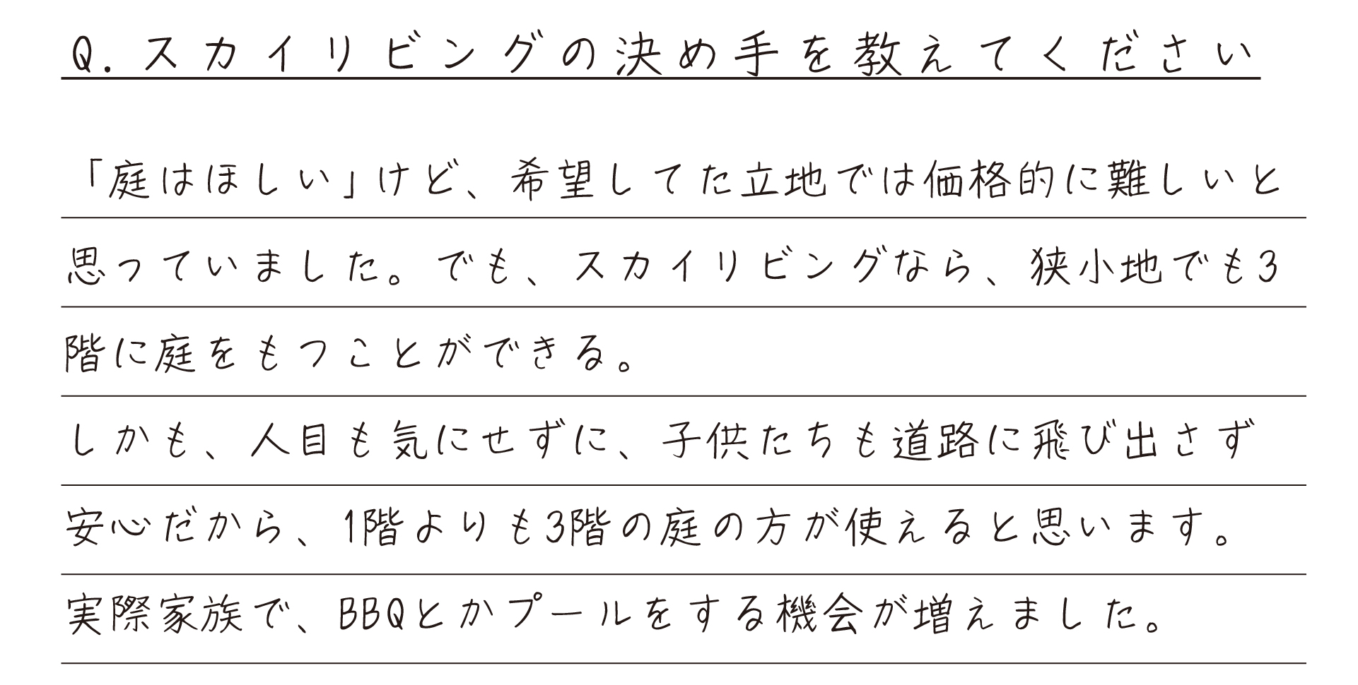 『SKYLIVING』なら狭小地にも庭が持てる!!