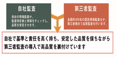 行政の監査や認可法人の監査だけでは、家の隅々までチェックされていないことが殆どなので、品質監査を行っていないと見えない所は特に図面と違う家が建つ可能性があります。家を決める上で「どのように品質監査をしているか」は、重要なポイントです。