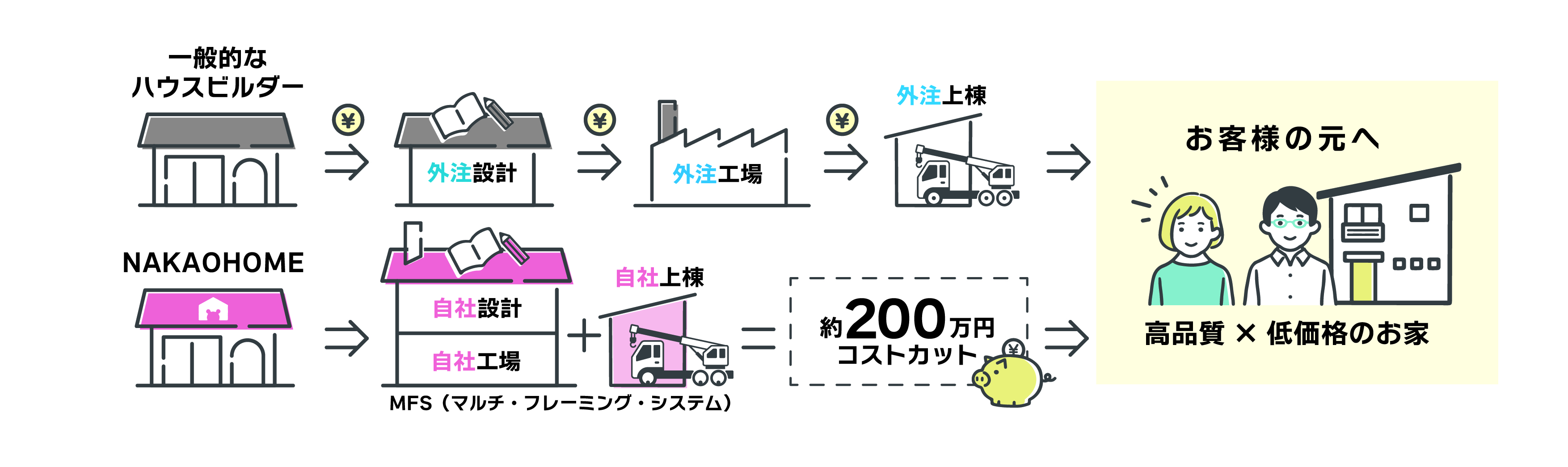 通常発生する「外注費用」をカットし、コスパの良い家づくりを実現しています。