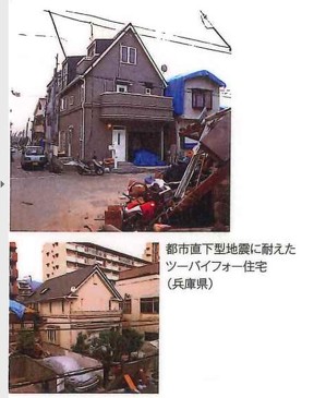 阪神・淡路大震災では、ツーバイフォー住宅は「被害なし」及び「多少の被害」の住宅が約97%でした。