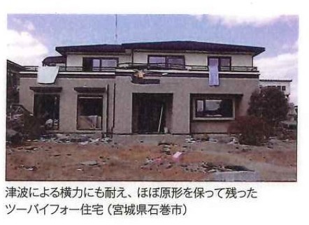 東日本大震災では、特に津波による被害が甚大でした。ツーバイフォー住宅の調査対象棟数は20,772棟で、そのうち津波による被害を除けば、「被害なし」及び「多少の被害」の住宅が約98%でした。