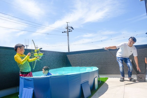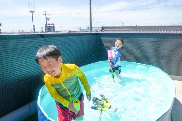 今の立地で庭はほしいけど価格的に難しいと思っていた。でも屋上庭園付3階建て住宅は狭小地で3階に庭がある。人目も気にしなくていいし、子供たちも道路に飛び出さず安心だから1階よりも3階の庭の方が使えると思います。