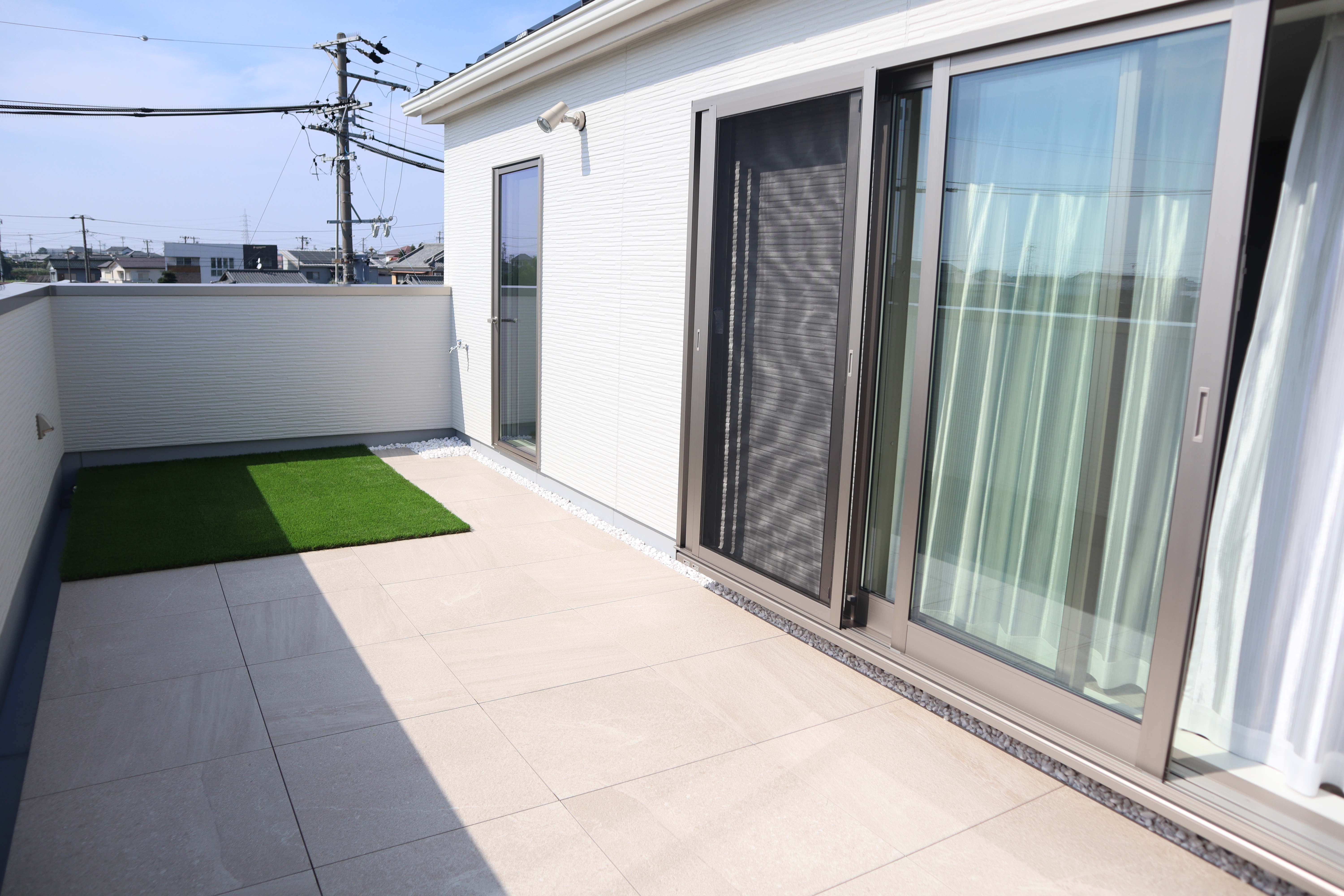 洋室とつながる屋上庭園。大きな窓から光と風を取り込み、外に出ればプライベートな空の下でくつろげる開放的な空間です。