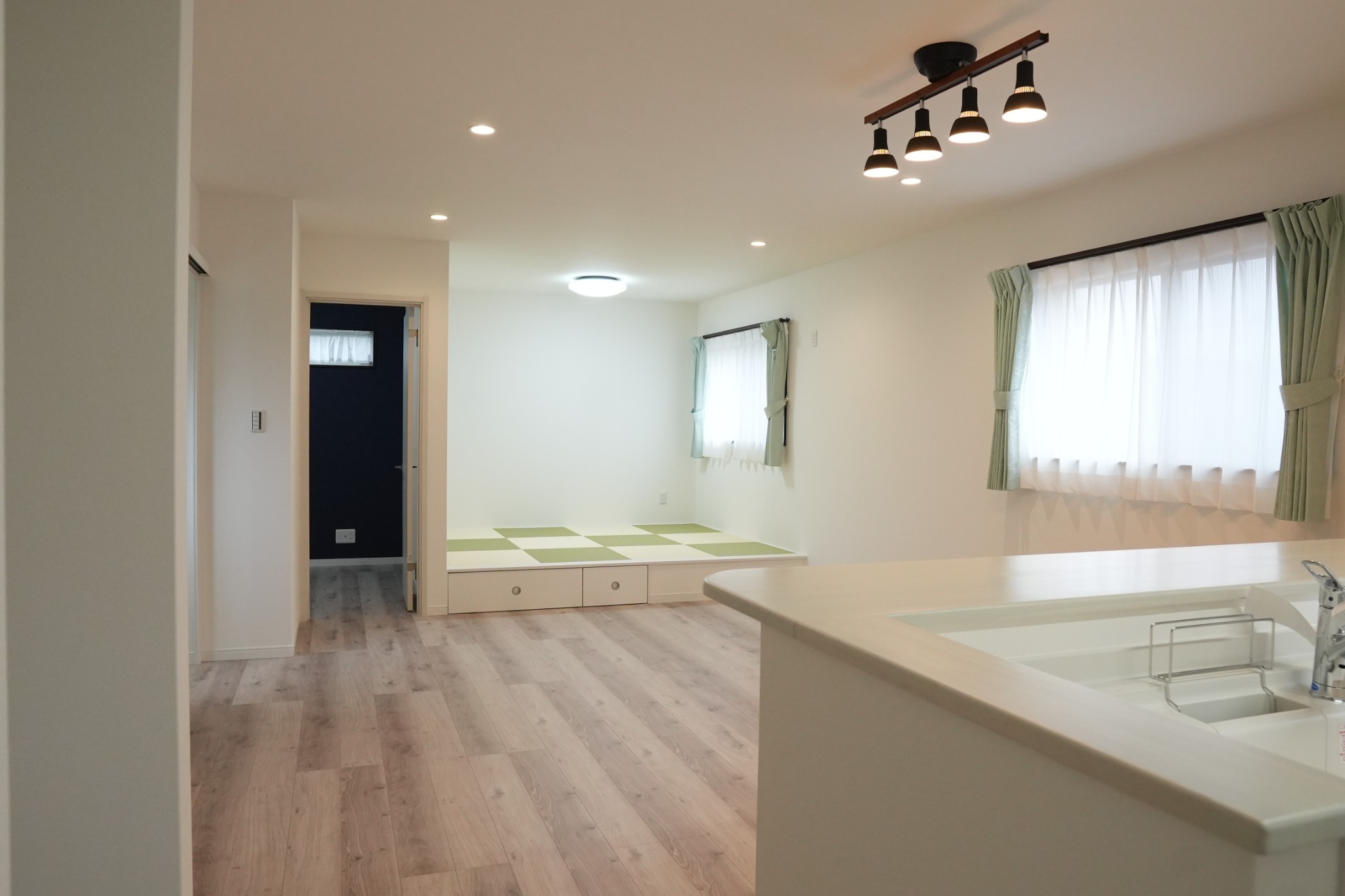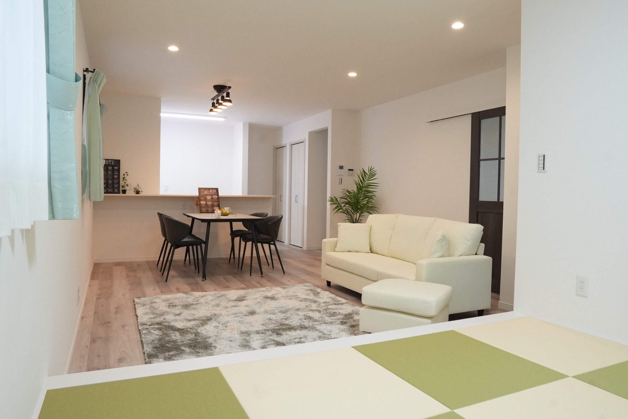 畳コーナーとLDKがゆるやかにつながる、明るく開放的な空間。家族それぞれが思い思いに過ごしながら、自然と気配を感じ合える、心地よい暮らしを叶えます。