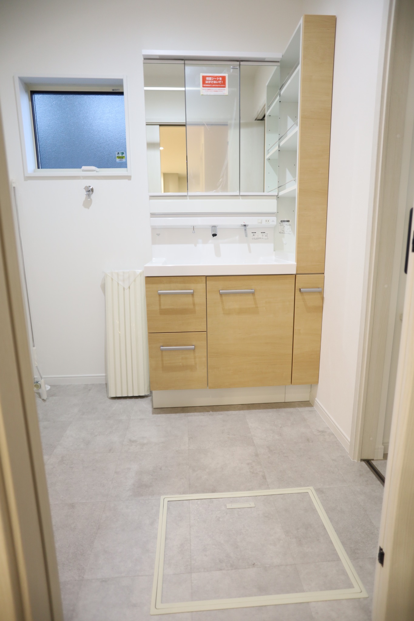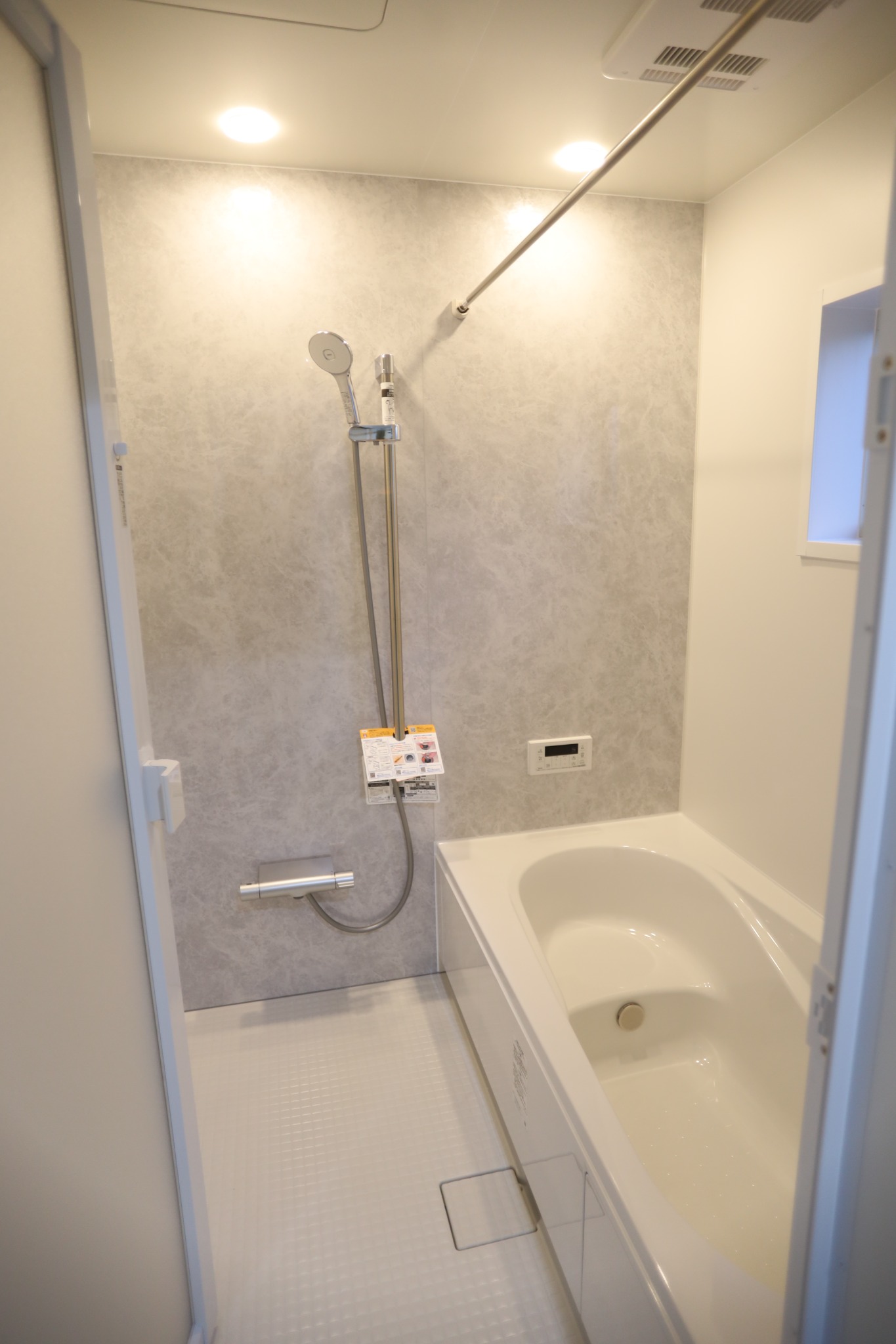 浴室と洗面室をまとめて感じられる、清潔感のある水まわり空間。シンプルで明るい内装に、使いやすい設備を備え、毎日の身支度や入浴が快適に行えます。